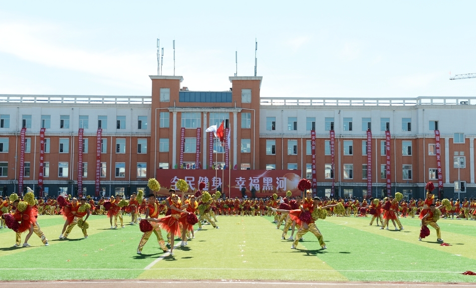 本网讯(记者 何振东)9月12日上午,由中共黑河市委、黑河市人民政府主办,黑河市体育局承办,以“全民健身,幸福黑河”为主题的黑河市第五届运动会在第五中学体育场隆重开幕。我院贯昌福院长应邀出席了开幕式,由我院学生组成的代表队参加了开幕式团体操表演。