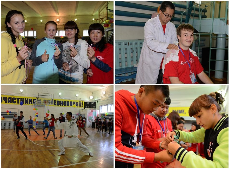 本网讯(记者 胡颖 王佳)9月15日,参加第五届“携手青春 共享阳光”国际青年大会的千余名中俄大学生欢聚在俄罗斯穆欣基地,进行了趣味横生、丰富多彩的联谊活动。