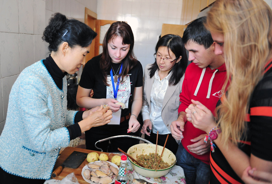 本网讯(记者 胡颖)9月18日,来自俄罗斯高校的10余名青年学生,走进黑河学院大学生家庭,感受中国大学生的热情与好客,这是第五届“携手青春 共享阳光”国际青年大会的一项重要文化体验活动。黑河学院纪检委书记孙丽莉与中俄大学生一起剪纸、编织中国结、包饺子,体验中国大学生家庭生活,感受中国家庭文化,促进俄罗斯青年对中国传统文化的理解和认知。