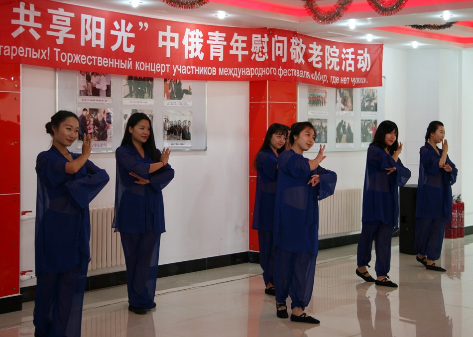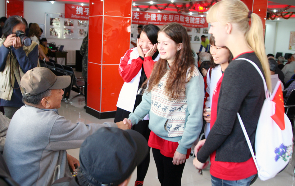 本网讯(大学生记者团 李球)9月18日,为了弘扬“敬老,爱老”的优良传统,传承志愿者精神,由中俄青年学生组成的志愿者队伍来到黑河市第二福利院,为老人们献上动人的歌声和优美的舞蹈,志愿者们还为老人们送去精心准备的礼物和最诚挚的祝福。