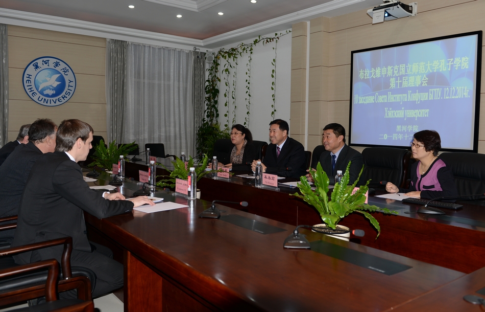 本网讯(记者 何振东)12月12日,俄罗斯布拉戈维申斯克国立师范大学孔子学院第十届理事会在我院明德楼二楼会议室召开。黑河学院院长贯昌福;布师大校长列依法·安德烈,第一副校长谢尔基延科·尤里;布师大孔子学院理事会成员代表及两校相关人员参加会议。会议由黑河学院副院长车永宏主持。