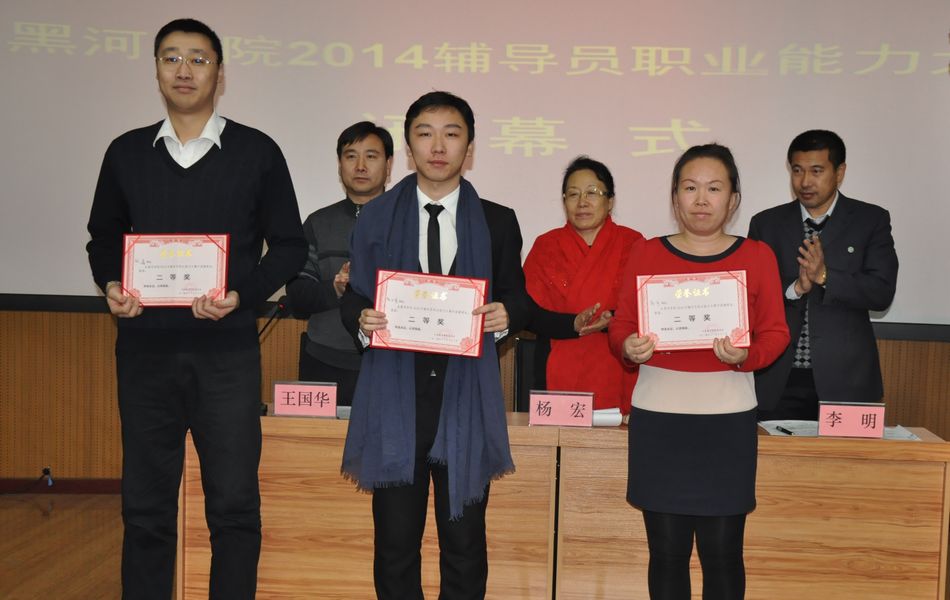 此次辅导员职业能力大赛历时1个月,共有来自13个系的37名辅导员参赛。经过培训、笔试、现场展示等环节的激烈角逐,历史文化旅游系辅导员车艳竹荣获一等奖;数学系辅导员高齐、计算机科学与信息工程系辅导员陈正堂、美术系辅导员张鑫荣获二等奖;国际教育交流合作中心辅导员王井荣、俄语系辅导员王平、美术系辅导员白云涛、体育系辅导员朱萌萌、中文系辅导员梁洪润获得三等奖。
