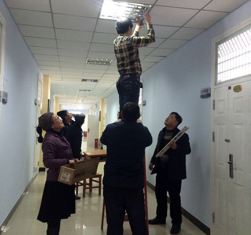 3月5日上午,学校副校长车永宏亲自带领后勤管理处、校办公室等相关部门负责人对校区教学楼走廊、门厅、照明亮化设施进行了检查,实地调研了消防设施、教室桌椅损坏维修情况。