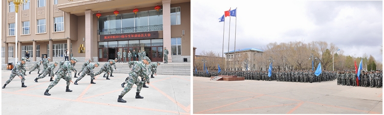 动员大会上,学校党委副书记、2014级学生军训大队大队长杨宏为军训中队授旗。解放军65951部队训练大队教导员刘建华宣读了《黑河学院2014级学生军训计划》和《黑河学院2014级学生军训考核评比办法》。周方圆同学代表参训学生表达了完成军事训练的信心与决心。训练大队官兵们进行了队列等示范性表演,整齐的队列、扎实的基本功,赢得了全场师生热烈的掌声,为期10天的2014级新生军训工作随即全面展开。