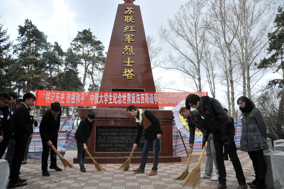 祭扫活动上,中俄学生纷纷表示,要铭记两国军民为世界和平献出生命的光辉历史,珍惜用鲜血和生命凝成的中俄友谊,用自己所肩负的神圣使命和责任,续写两国人民世代友好的伟大事业。