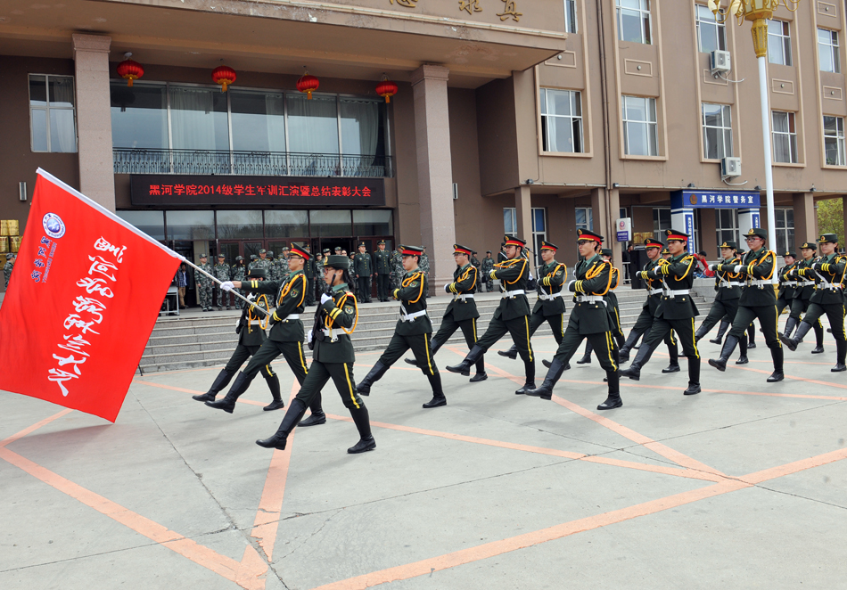 学校党委副书记、2014级学生军训大队大队长杨宏在讲话中对本次军训工作顺利完成表示热烈祝贺,向承训部队官兵致以崇高敬意和衷心感谢。杨宏副书记表示,同学们通过军训进一步树立了和平时期居安思危的国防观念,增强了保卫祖国的责任感和使命感。全体参训同学发扬了黑河学院精神,以饱满的热情投入到军事训练中,磨练了意志,砥砺了品格,强健了体魄,提高了素质。她希望全体同学继承和发扬在军训中养成的良好习惯和优良作风,在今后的学习、生活中,不断地超越、历练自我,巩固好军训的成果;同时要树立远大的理想和信念,立大志,成大才;要坚持学习科学文化知识与加强个人思想修养的统一,坚持实现自身价值与服务祖国的统一,争做品德高尚、学识丰富、可堪大用、能负重任的时代骄子。