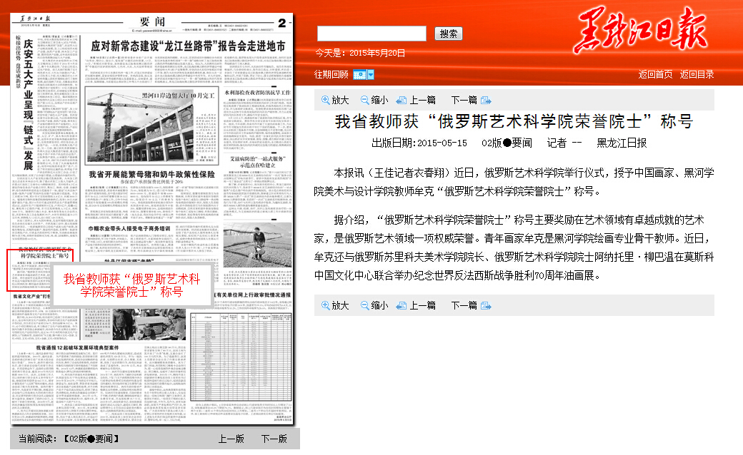 黑龙江日报:我省教师获“俄罗斯艺术科学院荣誉院士”称号