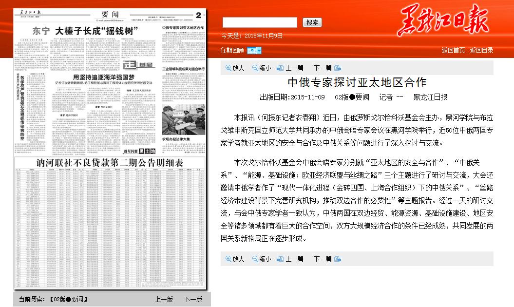 黑龙江日报:中俄专家探讨亚太地区合作