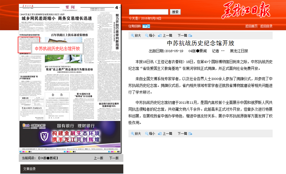 参考消息:中国高校首家中苏抗日历史纪念馆成“爱国主义教育基地”