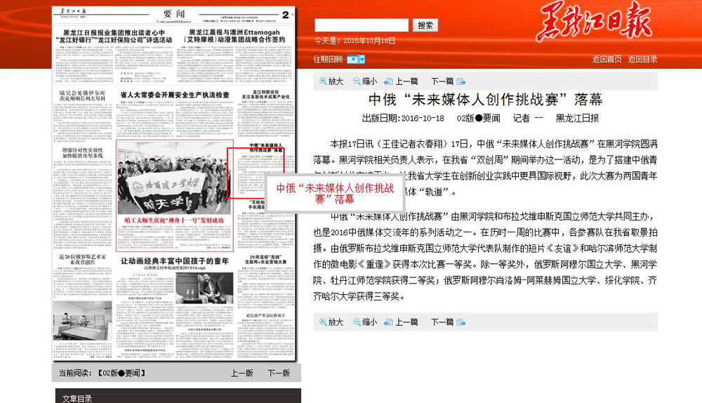 黑龙江日报:中俄“未来媒体人创作挑战赛”落幕