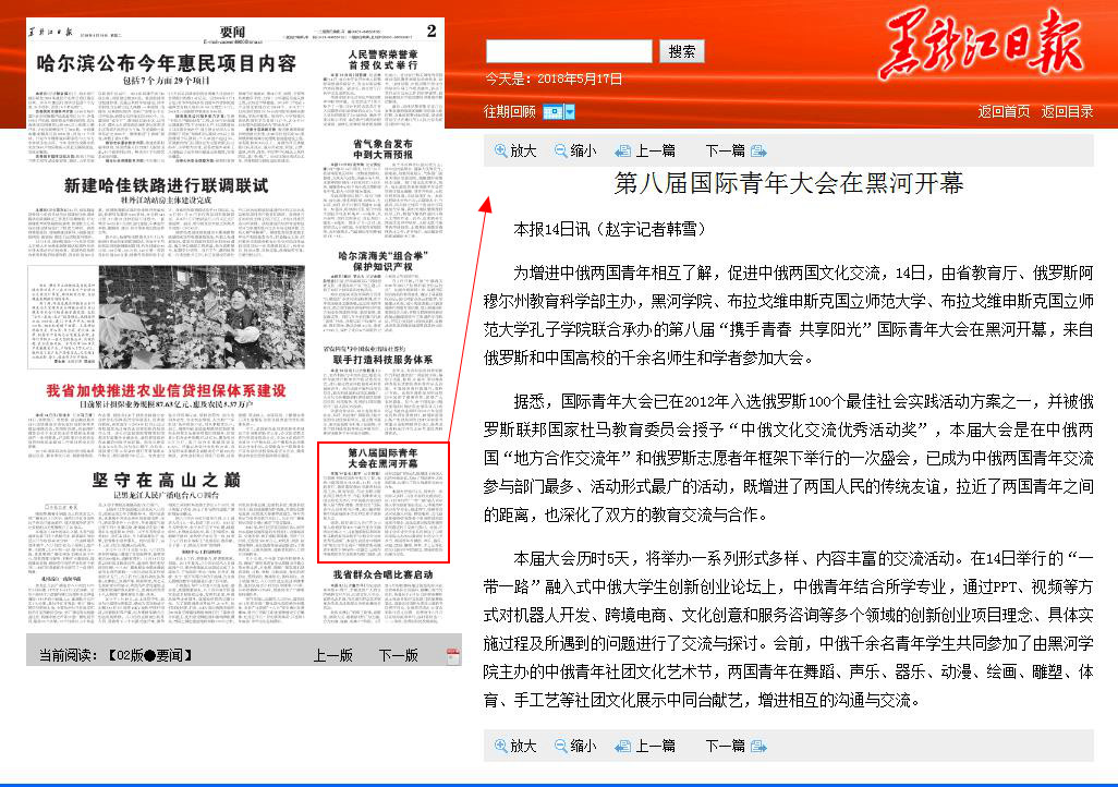 黑龙江日报:第八届国际青年大会在黑河开幕