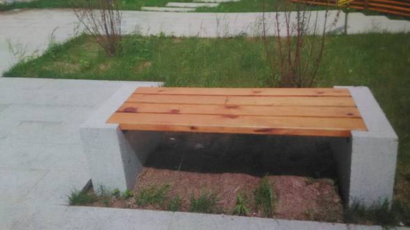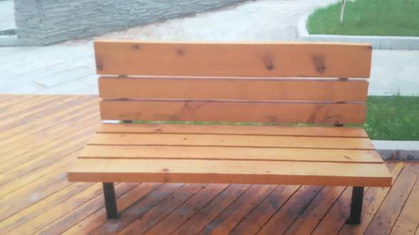 (2)石墩底座、钢方管骨架,座位用2000*100*50樟木板刨光后安装,刷封闭底漆两遍,刷面漆两遍。数量10个。附该样式园林椅照片: