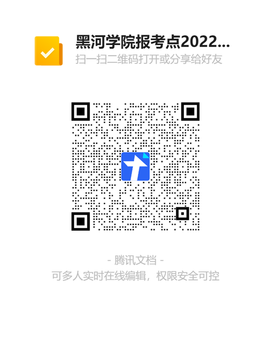 为了切实保障广大考生的健康安全,确保考生顺利应试,请广大考生积极配合,填写“黑河学院报考点2022年硕士研究生招生考试考前流调问卷”,请考生于12月10日中午12点前通过手机扫描下图二维码或点击下方链接如实填写信息,上传当日“龙江健康码”和“通信大数据行程卡”截图。(如有变化,请及时进行更新)请考生持续关注黑河学院教务处微信公众号。