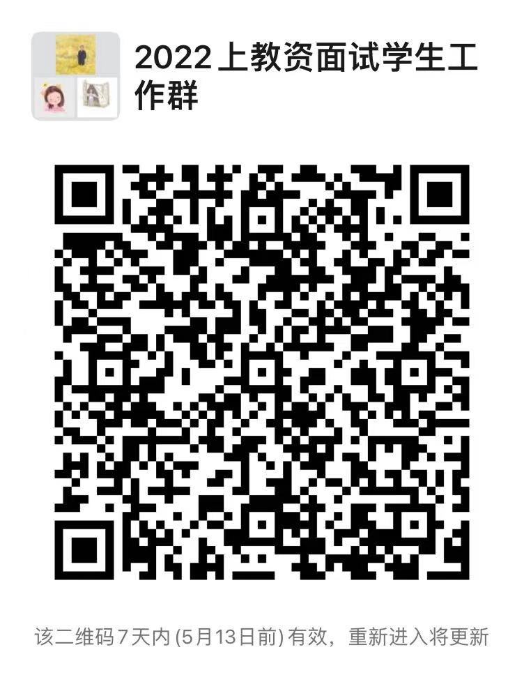 2022年5月14至15日,2022上半年全国教师资格考试(面试)工作将在我校进行,诚邀部分在校学生作为工作人员参加本次工作。请相关学生入群。
