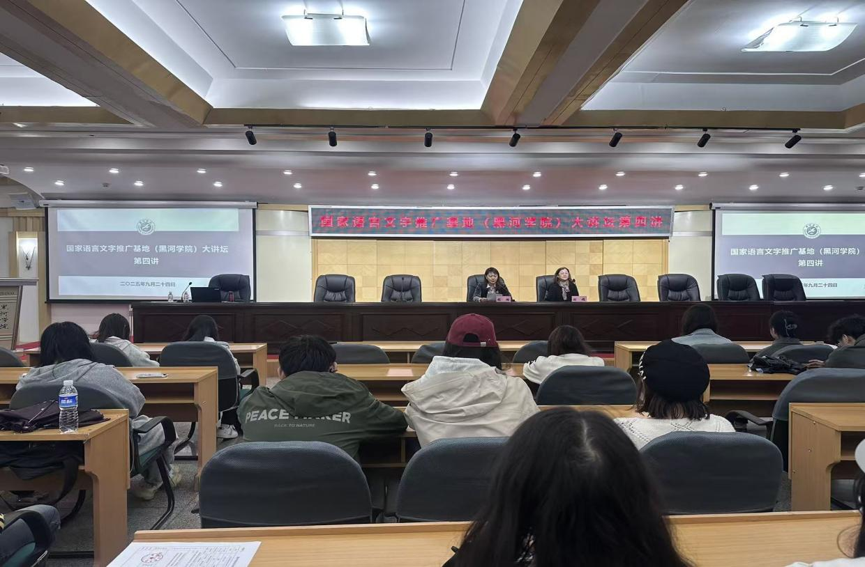 9月24日,国家语言文字推广基地大讲堂第四讲在明德楼多功能厅开讲。国家级普通话水平测试员、黑龙江大学汉语言文字学硕士、国家汉办汉语教学专家、人文传媒学院原副院长刘娟老师应邀作题为《加大国家通用语言文字推广力度,促进铸牢中华民族共同体意识》的专题讲座。学校100余名师生现场聆听。