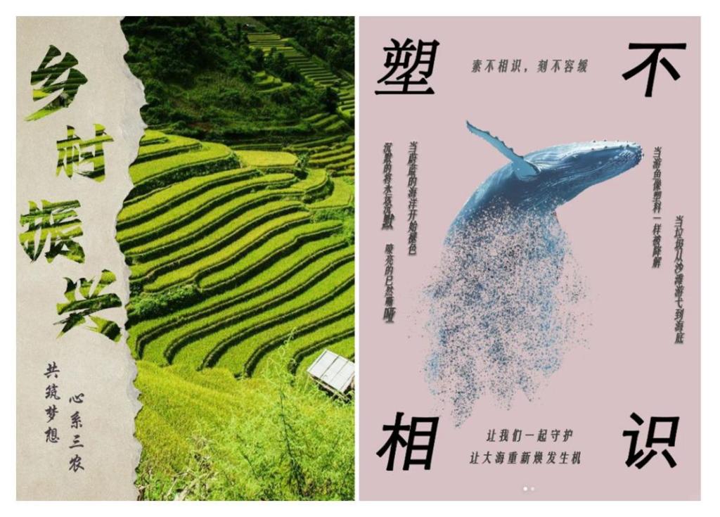 本届网络文化节共设置“光影趣青春”“影像创意汇”“网图新视界”“网语青年说”等七个特色赛道,共征集学生作品80余件。学生们以青年视角,聚焦乡村振兴、环境保护、文化传承、社会发展等时代大命题和大学文化生活校园主题,发挥专业特长,通过微视频、音频、平面设计、公益广告等多种传达形式,创作一系列主题鲜明、创意十足的原创作品,展现了新时代大学生的精神风貌与责任担当。