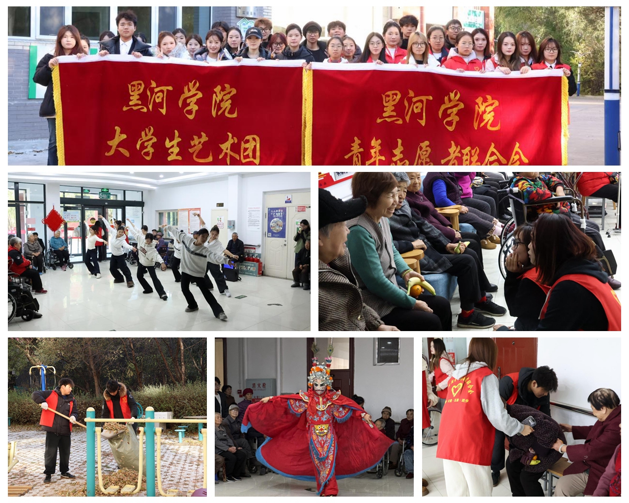 在“九九”重阳节即将来临之际,10月22日,校团委组织校青年志愿者联合会、校大学生艺术团走进民政老年公寓,开展“金晖行动”志愿服务活动,为老人们送去秋日关怀与温暖。