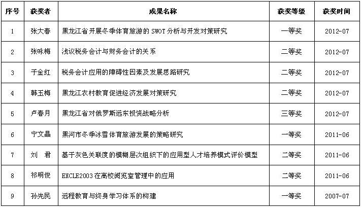 黑龙江省高等教育学会优秀高等教育科研成果奖