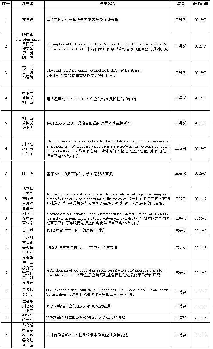 黑龙江省自然科学技术学术成果奖