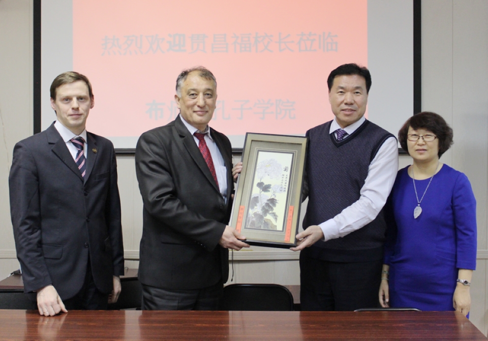 会后,校长贯昌福在孔子学院中方和俄方院长的陪同下参观孔子学院并与全体教师座谈,他指出,我校与布拉戈维申斯克国立师范大学共建的孔子学院成立8年来,在教授汉语和传播中国文化方面取得了较大的成绩,得到了阿穆尔州民众的认可,在全球孔子学院中也享有盛誉。