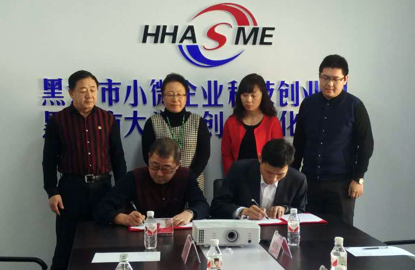 本网讯(特约记者 赵晓娜 鄢占财)为增强大学生自主创业意识,帮助和扶持大学生创业、就业,促进校企结合,3月4日上午,黑河市中小企业协会与我校创新创业学院在黑河市中小企业科技创业园达成了合作意向,并签订合作协议,将我校800平方米的大学生创业廊一并纳入黑河市中小企业协会创办的黑河市小微企业科技创业示范园,并作为大学生创业孵化基地B区,双方共同运营,开展合作成果的展示与大力推广,在协会内部企业为我校毕业生提供实习岗位和就业推介,为我校提供财务、法律、融资培训等相关服务。