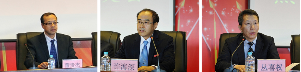 受省委委托,党委书记曹百瑛代表校党委宣布省委常委会对我校领导班子调整的决定,董贵杰同志任黑河学院党委委员、纪委书记,许海深同志任黑河学院党委委员、副院长,丛喜权同志任黑河学院党委委员、副院长;宋立权同志不再担任黑河学院副院长,调任黑龙江工程学院副院长。曹书记对已退休的原纪委书记孙丽莉和调任的副院长宋立权两位同志多年来为学校发展建设作出的贡献给予高度评价,对三位新任职同志作了介绍。曹书记指出,董贵杰、许海深、丛喜权三位同志的任职为黑河学院党政领导班子注入了新的血液,必将有利于我校领导班子建设和干部队伍建设整体水平的提高,有利于学校事业的可持续发展。曹书记希望,学校各级领导班子要增进团结、勇于担当、廉洁自律,不断增强整体合力,促进学校事业健康发展;全校教职工要提高认识,把思想和行动统一到省委决定上来,振奋精神,团结一心,攻坚克难,为学校“十三五”事业发展开好局、起好步作出积极贡献。