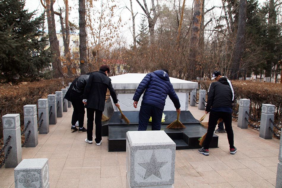 文化旅游学院师生对王肃烈士墓进行了全面的清洁和整理。