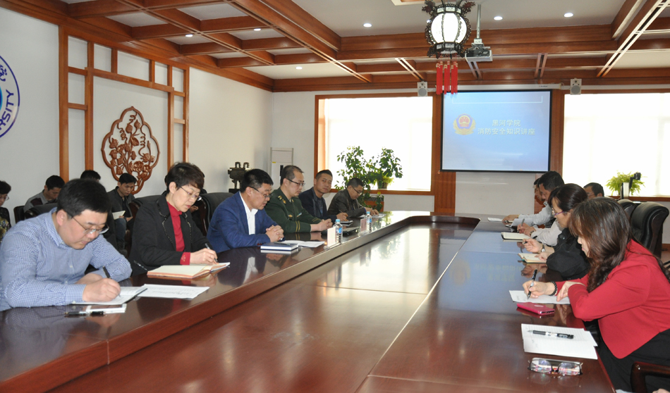 本网讯(特约记者 万春阳 摄影 何振东)4月13日下午,学校在明德楼三楼会议室召开消防安全知识培训会,特邀黑河市公安消防支队宣传科科长梁垒少校担任主讲。副校长车永宏主持会议并发表重要讲话,总会计师、财务处处长宁艳杰出席培训会,各学院、各部门负责人共40人参加培训。