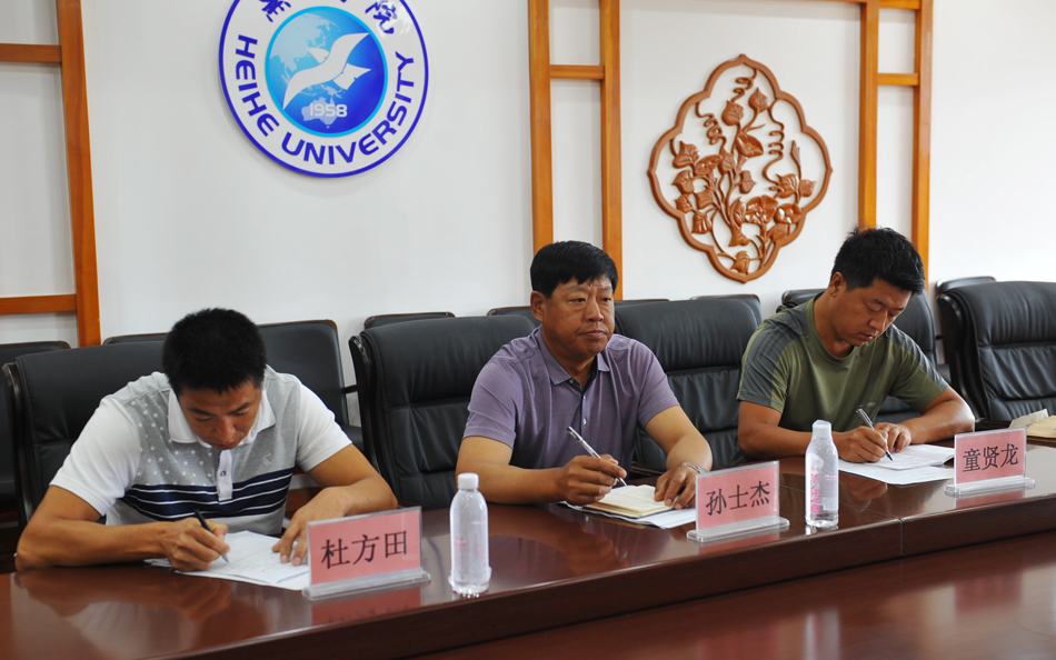 本网讯(特约记者 柴华 摄影 何振东)8月25日上午,黑河学院与黑河(逊克)国家级中俄农业科技合作园“产学合作”对接会在我校召开。副校长许海深与黑河(逊克)国家级中俄农业科技合作园区管委会主任孙士杰、科研协作中心主任童贤龙、种植管理中心主任杜方田进行了对接交流。