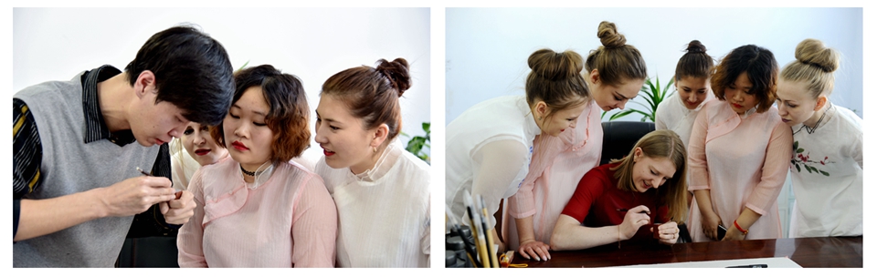 本网讯(记者 赵宇 学生记者 郑承江 张瑞芹)为迎接“三八”国际妇女节的到来,3月3日下午,我校来自俄罗斯、吉尔吉斯斯坦、越南的留学生们秀旗袍、品茶艺、学篆刻,共同体验中国传统文化,在校园里刮起了一场"最炫民族风"。