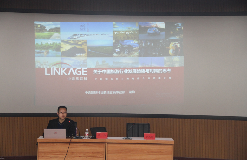 本网讯(特约记者 何振东 孟梦航)3月19日,我校文化旅游学院特邀中青旅联科目的地营销事业部副总经理梁钧作了题为“关于中国旅游行业发展趋势与对策的思考”的专题讲座。黑河市副市长马春波,我校副校长丛喜权、文化旅游学院院长潘华与黑河市旅游发展委员会、爱辉区旅游发展委员会相关负责人及200余名师生一同聆听了讲座。讲座由文化旅游学院党总支书记于凤丽主持。