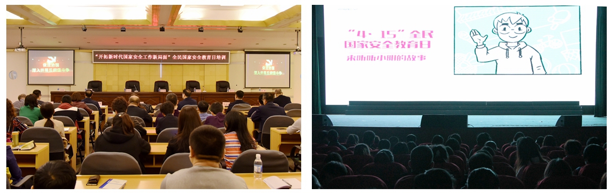 学校特邀黑河市国家安全局工作人员进校播放《依法治国 深入开展反间谍斗争》宣传片,进行“开拓新时代国家安全工作新局面”全民国家安全教育日主题培训;组织团学干部观看国家安全教育视频,通过主题团活,学习相关法律知识,掌握反恐基本常识,在学习的基础上将举办国家安全征文比赛等活动。