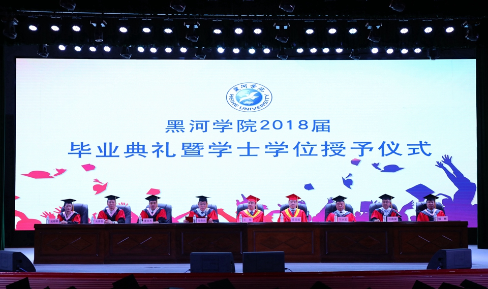随着雄壮的国歌奏唱完毕,毕业典礼正式开始。校长贯昌福为毕业生代表美术与设计学院学生郑超拨流苏,颁发学位证书和毕业证书,并代表学校对圆满完成学业的同学们表示热烈的祝贺,向多年来为学生健康成长付出辛勤劳动的广大教职工表示崇高的敬意。贯校长激动地说,大学是人生最美好的时光,奠定了未来事业发展的坚实基础。四年前,你们怀揣梦想进入黑河学院。四年中,你们在学习中转变,在转变中成熟。今天,共有2525名同学顺利毕业。其中有30%以上的同学获得过国家、省、校级“三好学生”“优秀学生干部”等各类荣誉称号,有近百名毕业生考取了硕士研究生,有的毕业生在全国高校商业精英挑战赛、全国数学建模大赛、全国“TRIZ”杯大学生创新设计大赛等科技、文艺比赛中取得了优异成绩。贯校长对毕业生为学校发展建设所作出的贡献表示衷心的感谢,他勉励毕业生要珍惜时代赋予的使命,做一个志存高远、追求卓越的人,做一个品德高尚、懂得感恩的人,做一个明理诚信、敢于担当的人,做一个勤学善思、苦干实干的人,担当起时代使命,汇聚起青春力量,以青春筑梦、以奋斗圆梦,在追梦的过程中实现人生价值。