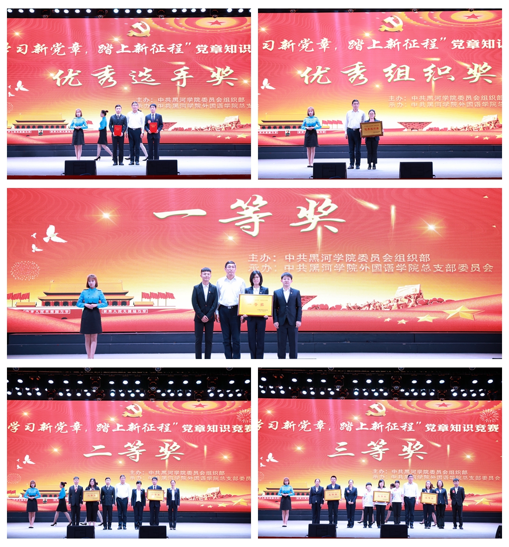 本网讯(特约记者 温丽丽 摄影 关月)为切实贯彻《关于在全市基层党组织和党员中认真学习宣传贯彻<中国共产党章程>的通知》精神,增强广大党员学习、遵守和维护制度的自觉性,促进干部廉政勤政,6月26日下午,由中共黑河学院委员会组织部主办,中共黑河学院外国语学院总支部委员会承办的“学习新党章 踏上新征程”党章知识竞赛在明德楼礼堂举行。党委书记王刚,副校长张焕强、车永宏,党委委员、总会计师、财务处处长宁艳杰,党委委员、组织部部长邹辉,党委委员,宣传统战部部长吴春娟及各学院、各部门负责人与全校党员师生代表共同观看比赛。