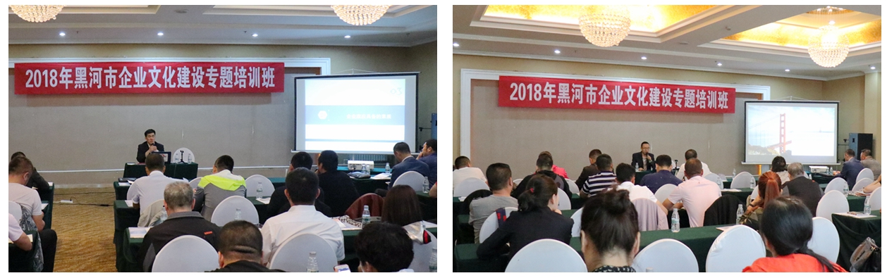 本网讯(学生记者 田震)按照黑龙江省工信系统2018年培训计划安排,为了引导黑河市企业遵守市场经济规律和规则,更好致力于加快完善企业治理结构,加强企业文化建设,提升企业竞争力与凝聚力,6月26日,黑河市中小企业协会主办的《企业家与企业文化建设、行为、思维模式》专题讲座在黑河市国际饭店三楼会议室举行,我校经济管理学院经济系主任翟立强、管理系副主任尤春明应邀为学员分别作题为《企业与企业家素质》和《公司财务中公允价值引用及部分疑难会计处理解析》的专题讲座。