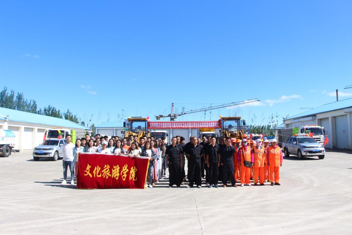 黑河市城市管理综合执法局副局长李伟与文化旅游学院院长潘华分别代表双方为大学生社会实践基地揭牌。黑河市城市管理综合执法局环卫处党支部书记邓峰与文化旅游学院党总支书记于凤丽签署了社会实践基地协议书。文化旅游学院师生在环卫处工作人员的带领下参观了实践基地。