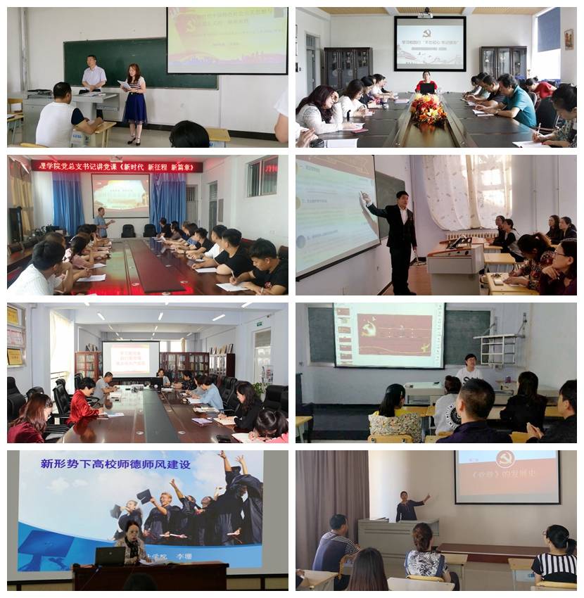 党课在学校领导、党总支和直属党支部书记伏案构思和生动讲授中,如春风化雨,不但激发了全体教工党员的学习热情,也明确了学习教育活动的任务要求。学校领导指出,学习贯彻习近平新时代中国特色社会主义思想和总书记重要讲话精神要与学校中心工作紧密结合,要把立德树人的成效作为检验学习和一切工作的根本标准,聚焦全面加强党的建设和有效提升思想政治工作质量,聚焦全力服务青年学生成长成才。党员干部要提高政治站位、树立历史眼光、强化理论思维、增强大局观念、丰富知识素养、坚持问题导向,从历史和现实相贯通、国际和国内相关联、理论和实际相结合的宽广视角,对一些重大理论和实践问题进行思考和把握,推动全校师生把思想统一到习近平新时代中国特色社会主义思想和党的十九大精神上来,做到真学真懂真信,以此谋划思想、指导实践,推动工作。