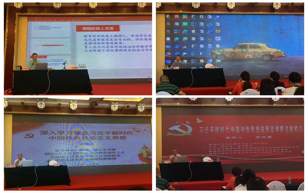 开幕式后,高国希、刘经伟、洪晓楠、张建国4位专家分别作立德树人与思想政治理论教育、习近平生态文明观的哲学意蕴、深刻领会习近平新时代中国特色社会主义思想、习近平新时代中国特色思想进思政课要注意的几个问题的主旨演讲;嘉兴职业技术学院、武汉职业技术学院、中国民用航空飞行学院、西华大学、济源职业技术学院及我校6所高校思政教师围绕本校思政课程进行展示,200名专家学者、代表对党的十九大精神如何进课堂、进学生头脑发表了自己看法,研究和讨论全面学习贯彻十九大精神的做法和体会以及各高校创新思政课的新举措。