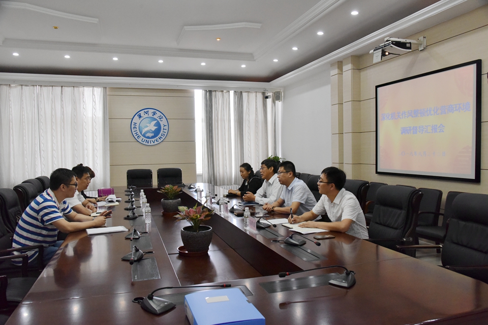 本网讯(记者 赵宇)8月22日上午,黑河市作风整顿办公室联合调研督导组成员张连生一行三人,深入我校调研督导深化作风整顿优化营商环境工作,我校党委委员、副校长张焕强,党委委员、组织部部长邹辉参加汇报会,党委(校长)办公室、纪检监察处负责人陪同调研。