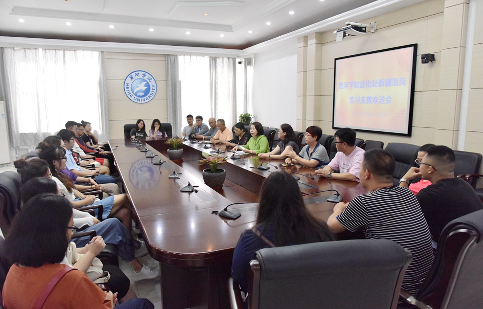 本网讯(特约记者 周国忠 摄影 赵宇)8月27日下午,我校首批赴新疆顶岗实习支教学生欢送会在明德楼三楼会议室举行,教务处处长柴华、学生所在学院相关负责人、支教带队教师及20名即将赴新疆阿勒泰地区顶岗实习支教的师范专业学生参加会议。