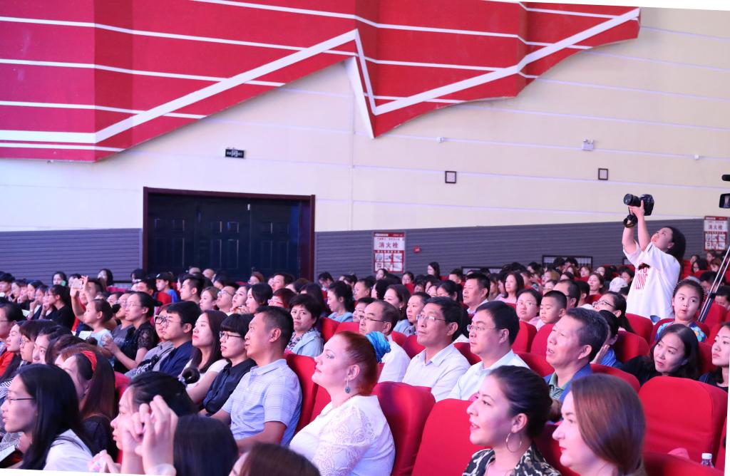本网讯(记者关月 摄影 李雪 曲佳园)8月27日晚,我校明德楼礼堂曲韵悠扬,乐声荡漾,掌声如潮。由莫斯科国立柴科夫斯基音乐学院合唱指挥教授A·B·索罗维耶夫、声乐教师M·H·切尔玛金娜、研修班参训学员及我校音乐学院合唱团共同参演的莫斯科国立柴科夫斯基音乐学院第二期中国音乐人才声乐、合唱指挥研修班汇报音乐会隆重上演。党委书记王刚,副校长张焕强、许海深、丛喜权及各学院各部门负责人与社会各界人士、我校师生近千人共同欣赏音乐会。