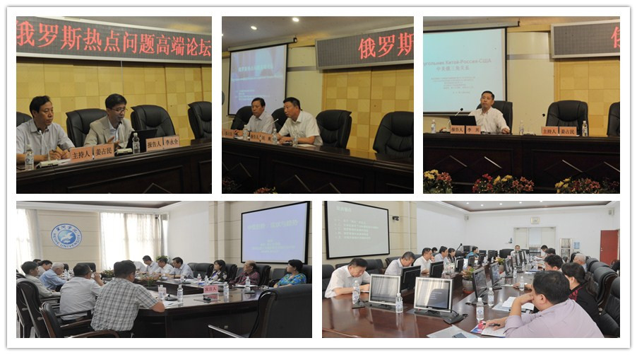 本网讯(记者 关月 摄影 张磊)9月1—2日,由中国俄罗斯东欧中亚学会与我校主办,黑龙江省俄罗斯东欧中亚学会俄罗斯学研究分会、黑河学院俄罗斯研究所承办的俄罗斯热点问题高端论坛在我校举行,中国驻俄罗斯前大使、国务院发展研究中心欧亚社会发展研究所所长李凤林,中国俄罗斯东欧中亚学会会长李永全,黑龙江省社科院原副院长、黑龙江省俄罗斯东欧中亚学会会长刘爽,黑河市社科联主席吴玉燕,我校校长贯昌福、副校长丛喜权与国内14所高校、科研院(所)的专家学者30余人围绕“一带一路”倡议、中俄区域合作、东北亚局势新变化等俄罗斯相关热点问题进行交流探讨。会议由副校长丛喜权主持。