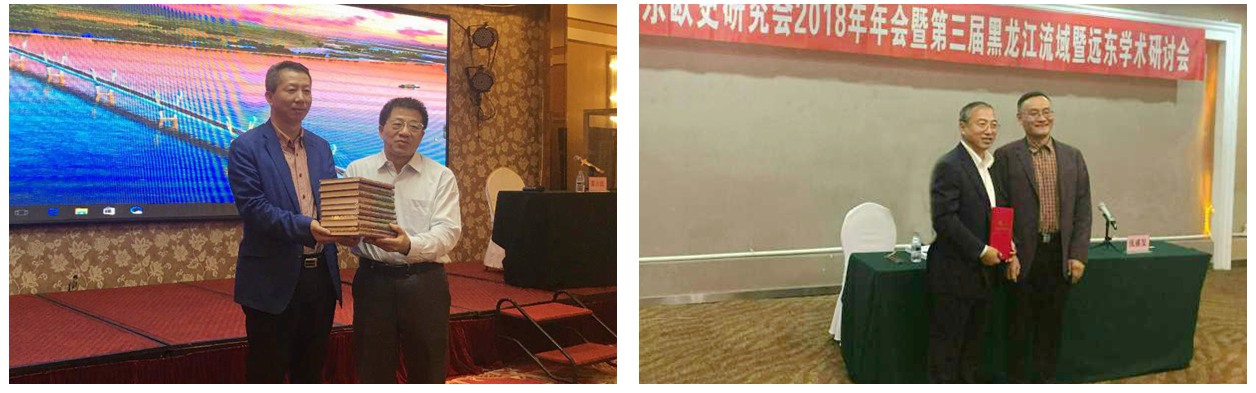 会议期间,我校副校长丛喜权代表学校接受了吉林大学东北亚研究院张广翔教授向我校赠书;远东研究院院长谢春河在中国苏联东欧史研究会常务理事会议上,当选为常务理事。