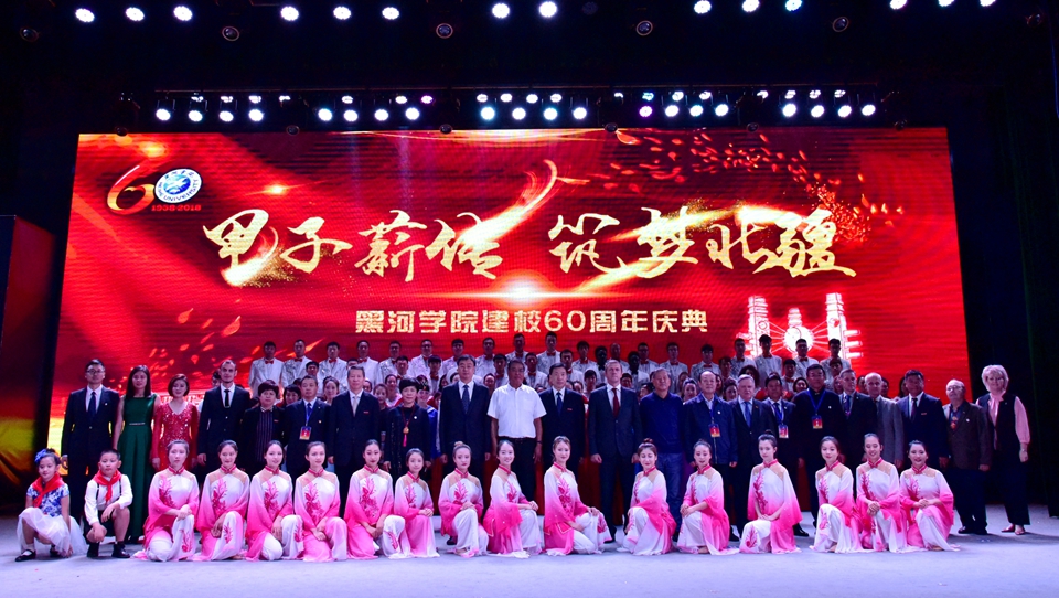黑河市领导秦恩亭、马里、蔺波,哈尔滨商业大学党委书记孙先民、哈尔滨体育学院党委书记曹百瑛、齐齐哈尔大学校长陈桂芝、绥化学院校长张凤武、黑龙江广播电视大学校长吕巧凤及国内兄弟院校的领导、俄罗斯合作院校校长到会祝贺;已经退休的原党委书记姜义男、曲伟建,校长马子龙、纪委书记孙丽莉、党委副书记李廷栋,曾经在校工作的原副校长、黑龙江工程学院副校长宋立权与校党政领导班子、历届校友和师生代表、各界来宾千余人参加庆典活动。20余万网友通过网易直播、微博直播同步收看庆典大会。