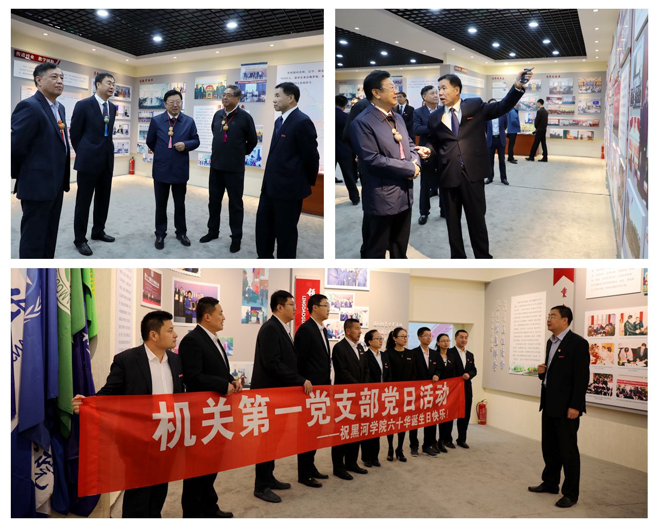 新校史馆是在原黑河学院对俄交流合作成果展展厅的基础上扩容改建而成,布展面积400平方米,曲折往复的回廊式结构,增加了浏览长度和可视性,“透墙”等形式强化了空间的整体性与立体感;设置“峥嵘岁月 基业肇创”“乘势而上 砥砺前行”“耕耘求索 灿然一方”“合通中外 卓乎不群”“长歌万里 德沃群芳”五个展区,以时为经,以史为纬,再现了学校六十载砥砺奋发的辉煌历程,展示了当今学校改革发展的巨大成就,凸显了我校不同历史时期在教育教学、科学研究和社会服务等方面所作出的贡献和主要成果。