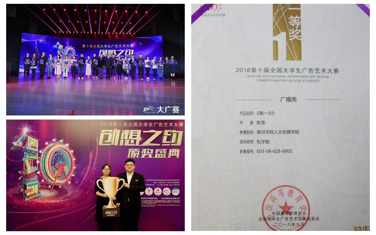 本网讯(特约记者 姜洁)11月24日,2018第十届全国大学生广告艺术大赛在全国政协礼堂圆满落幕。我校人文传媒学院师生创作的作品获得全国一等奖1项,黑龙江省一等奖3项、三等奖3项及若干优秀奖,实现了该赛事获奖数量和质量的双突破。