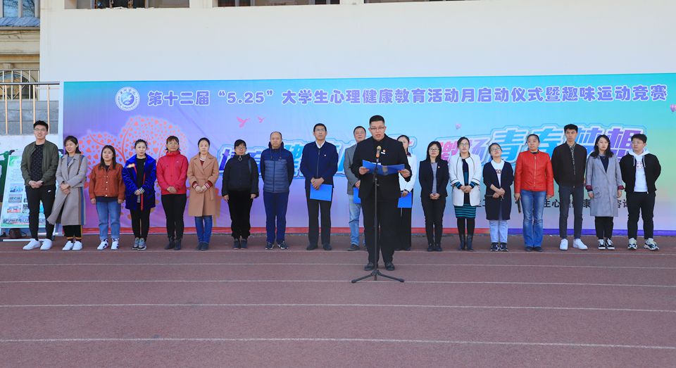 副校长张焕强在讲话中指出,学校高度重视大学生的心理健康教育工作,一直把加强人文关怀和心理疏导、引导大学生健康成长作为学生工作的一项重要内容。他强调,要扎实开展心理健康教育的系列活动,不断提高学生心理健康水平,增强学生抗挫折能力和心理调适能力,帮助学生逐步形成乐观向上、自信自强的个性品质。他希望广大学生以积极健康心态和良好精神面貌努力奋斗,担负时代责任,实现青春梦想。