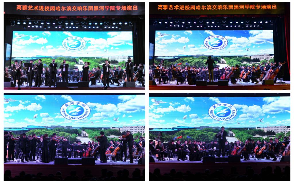 本网讯(学生记者 李兆东)5月30日,哈尔滨交响乐团黑河学院专场演出在我校明德楼礼堂举行。党委书记王刚,副校长车永宏、丛喜权,原党委书记姜义男及各部门、各学院相关负责人与800余名师生共同观看了演出。