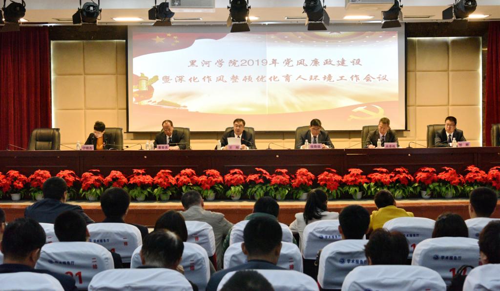 王书记指出,党风廉政建设和作风整顿,事关黑河学院长远发展大局。学校全面从严治党任重道远,全校上下要更加紧密地团结在以习近平同志为核心的党中央周围,以习近平新时代中国特色社会主义思想为引领,全面贯彻落实中央、省委重大决策部署,解放思想,振奋精神,锐意进取,不断加强党风廉政建设,深化作风整顿,坚定不移把学校全面从严治党工作推向纵深,为落实学校各项改革发展举措,加速推进学校转型发展战略提供坚强保证,为龙江实现全面振兴全方位振兴贡献力量,以优异成绩向祖国70华诞献礼。