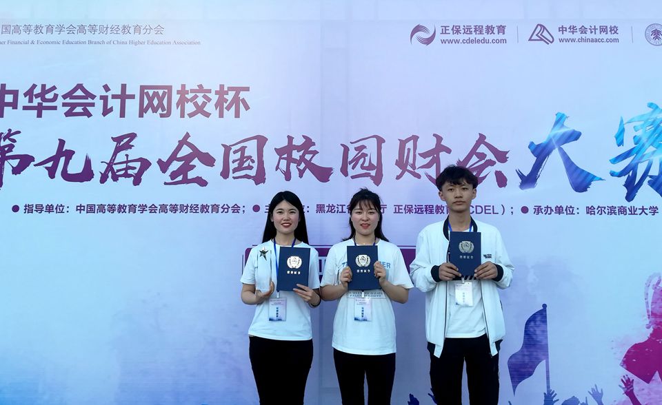 本网讯(特约记者 尤春明)6月2日,由黑龙江省教育厅、黑龙江省普通高等学校创新创业教育指导委员会与正保远程教育(CDEL)联合主办的第九届“中华会计网校杯”全国校园财会专业竞赛黑龙江赛区决赛在哈尔滨商业大学举行。我校经济管理学院教师李新华带队,学生王娜、张宏伟、王慧珍荣获比赛二等奖。
